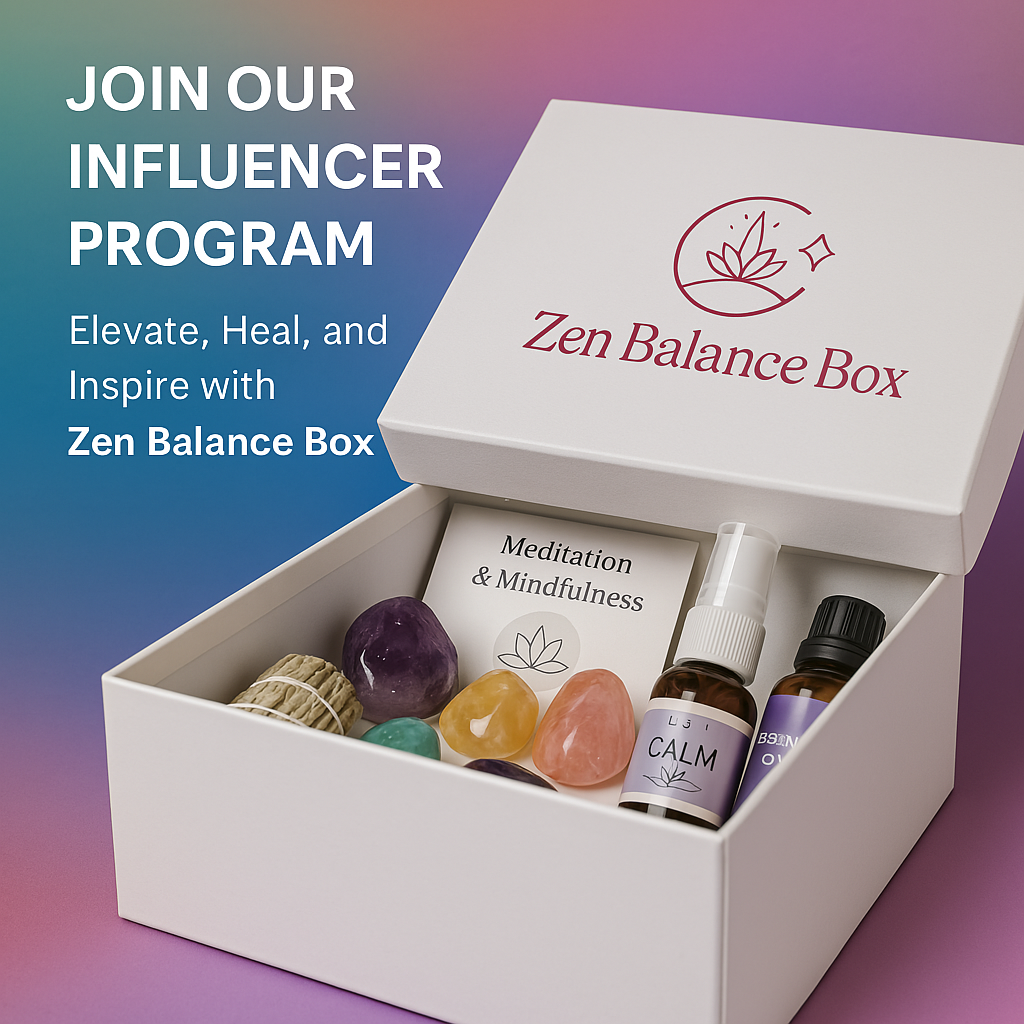 Join Our Zen Balance Box Influencer Program Are you a wellness practitioner, social media influencer, or creator passionate about holistic healing, meditation, and spiritual growth? At Zen Balance Box, we’re dedicated to empowering individuals through energy healing, crystal therapy, and aromatherapy. We’re looking for like-minded partners to help us spread our message of balance and well-being.