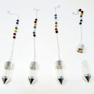Silver – Glass Bottle Chamber pendulums are great way to personalize a reading. Open cap and put sacred herbs, oils,